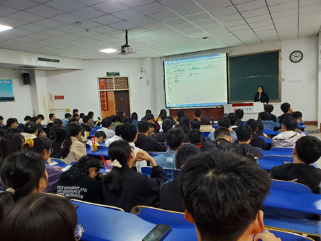 随后,郑州向心力通讯技术有限公司寇艳艳经理就信息安全的发展趋势、学科建设、人才培养,以及行业需求、职业规划、就业前景进行了全面的、深入浅出的介绍。郑州新思齐科技有限公司张海宁经理对网络起源、互联网现状、行业应用中IT行业社会价值、人生价值中介绍了现代企业需求人才所具备的能力,启发同学们做好职业生涯及人生规划。
