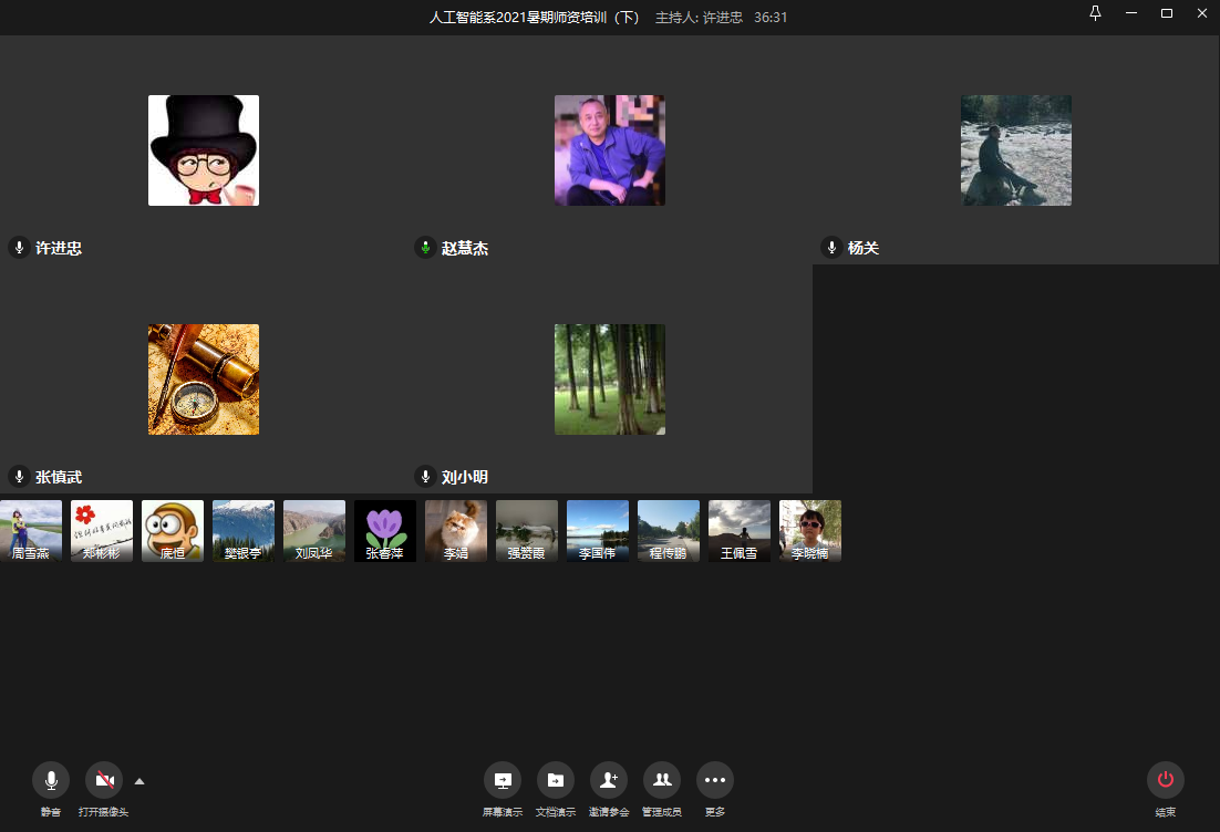 2021年暑期郑州疫情再次爆发,暑假申请的线下师资培训都无法参加,肆虐的疫情也无法阻挡教师们参加师资培训,人工智能系教师积极参与各类线上师资培训。为了提升人工智能专业课程教学能力,人工智能系也在8月26日通过企业微信会议,举行了内部线上师资培训。R34lol
