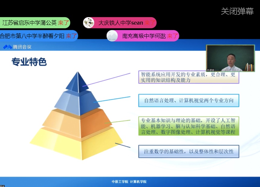 本次招生宣传直播活动分为四个专业专场,计科系主任王海龙以“计算新世界 数字新时代”为主题,网络系副主任张茜以“万物互联 网络为基”为主题、信息安全系副主任单芳芳、骨干教师高丽平以“信息通未来 安全稳天下”为主题,人工智能系副主任许进忠以“人工智能 改变未来”为主题,通过线上直播平台全方位向考生和家长介绍R34lol概况