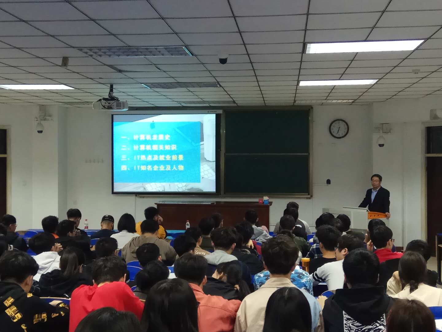 院长刘卫光教授于4号教学楼201教室给全体2018级学生进行了“计算机发展史”的专题讲座。