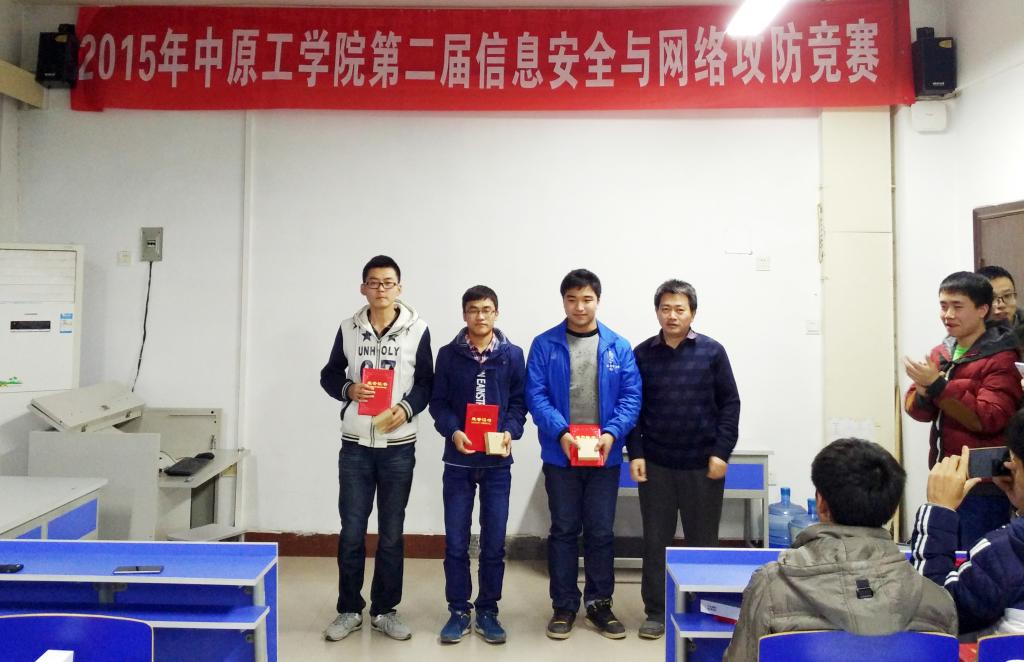 这是一场智力、经验、技能、体力的大拼搏,也是一场攻防技术盛宴。竞赛从上午9点开始,持续到下午3点结束,比赛时长6小时,竞赛中间不休息。比赛采用夺旗赛(CTF)形式,各参赛队通过获取并提交Flag得分,比赛内容涉及网络安全相关知识、网络攻击与防御技能和工具的使用等。比赛结束后举行的赛后交流会及颁奖仪式将整个活动推向高潮。获得一、二、三等奖的参赛队登台讲解自己的解题思路和经验教训,或令人击掌称赞,或令人脑洞大开。最后,来自Drops团队的三位竞赛题目设计者张志威、王康洪和李宇翔同学讲解每道题目考察的知识和技能点、各种可能的解题方法,赢得师生们的热烈掌声。