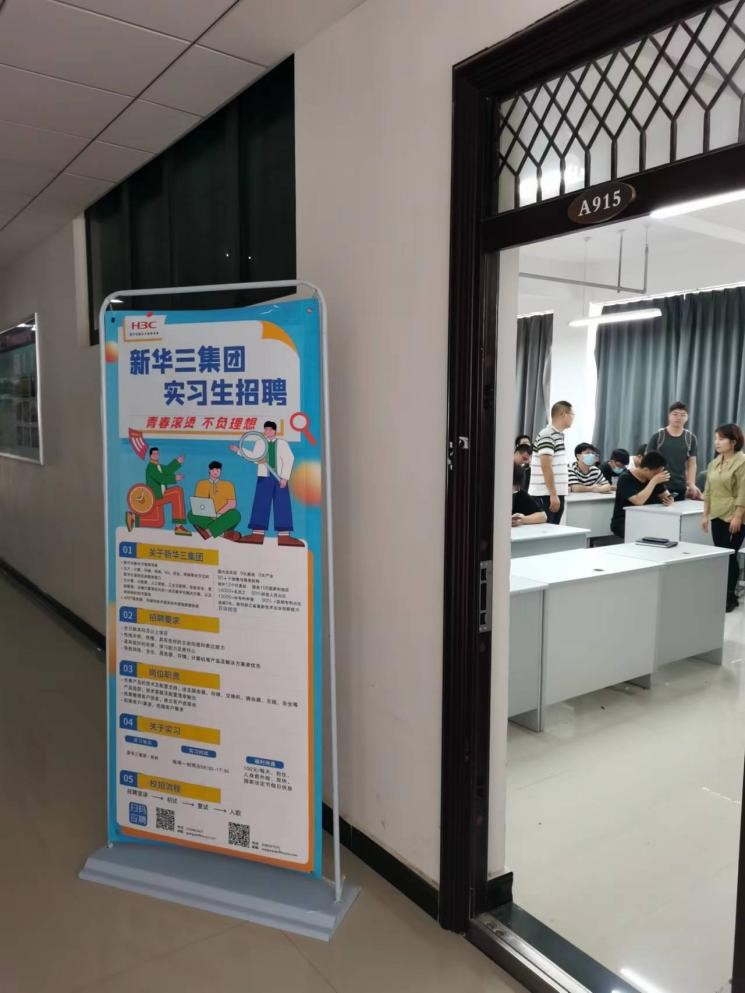 首先,与会人员进行了座谈,就新工科实习基地进一步合作和网络工程专业建设进行了热烈研讨。随后,新华三集团面向学生举行了实习生招聘专场,现场进行了实习生面试。经过现场的精彩介绍和同学们积极的报名,有15名同学参加了现场面试,经双方互选有6名同学成功入选。