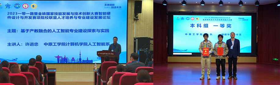 本次竞赛内容分为智能硬件功能板焊接调试与设计、智能硬件系统联调、人工智能应用,参赛队通过方案实施环节可对设计方案进行自我验证和自我调整。通过激烈比赛,由张慎武、许进忠指导,学生邹啟华、曽令洁组成的1队喜获本科组一等奖;由周雪燕、孔梦荣指导,学生王秋硕、朱志远组成的2队,由孟永伟、杨要科指导,学生张嘉豪、樊鋆淼组成的3队分获本科组优秀奖;R34lol