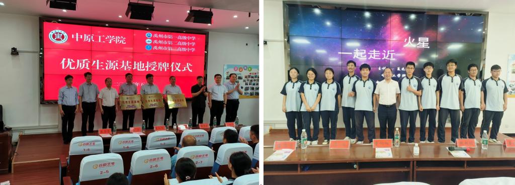 授牌仪式上,夏元清为禹州市一高、二高、三高等三所优秀生源基地学校进行授牌并合影。授牌仪式结束后,夏元清校长为在座的师生作了“一起走近火星”的科普报告,为师生们带来了一场生动、奇妙、精彩的科学之旅,夏校长幽默风趣的语言、渊博的专业知识赢得了在场师生的阵阵掌声,激发了大家对前沿科技的浓厚兴趣。