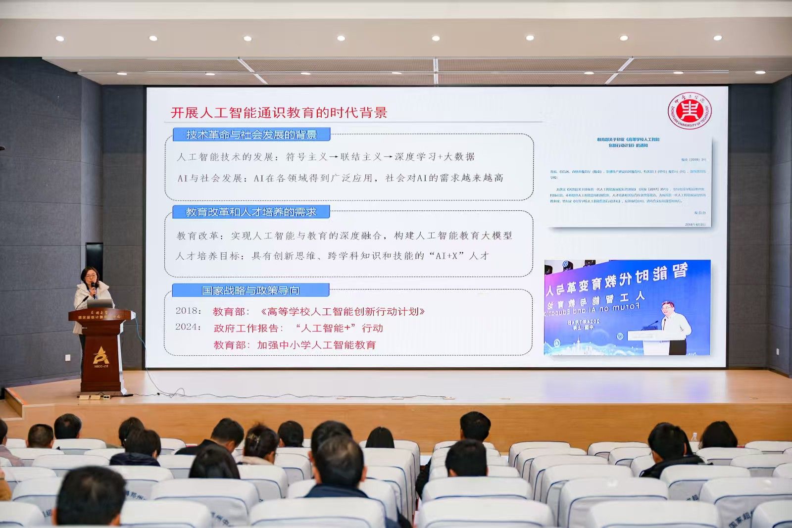 在人工智能通识课程建设方面的实践探索,包括课程目标的设定、教学内容的选择、实践环节的安排以及教学实施的情况,分享了计算思维与智能教育融合的课程理念,培养学生的人工智能应用创新实践能力。