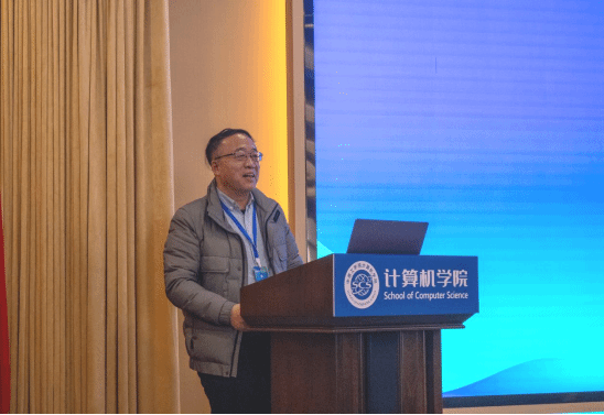 副校长付主木致欢迎辞。他介绍了学校在纺织与计算机交叉学科建设方面的探索与成效,强调学校长期致力于推进“纺织+计算机”跨学科创新与复合型人才培养,并希望以此次会议为纽带,进一步拓展校校、校企合作,共同培育产业转型所需的新型人才。