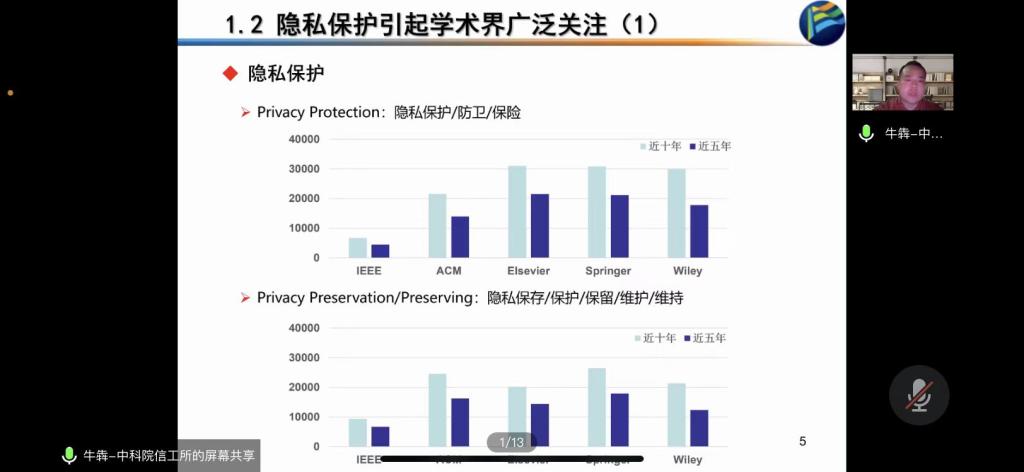 随着移动通信、网络技术和信息技术演进发展,促进了万物互联,新业态与新服务模式不断涌现迭代,用户数据频繁跨境、跨系统、跨生态圈交互已成为常态。讲座围绕个人信息保护面临的问题展开,首先阐述了密码学、数据安全、可信计算、机密计算、隐私保护与隐私计算的研究范畴及关联关系,“可算不可识”、“可用不可见”等目标实现的技术方法;然后,着重介绍了隐私计算的理论与技术研究进展,全面阐述了为什么要研究隐私计算、什么是隐私计算、如何研究隐私计算以及隐私计算,如何演化发展等内容;最后介绍了隐私计算的未来发展趋势。