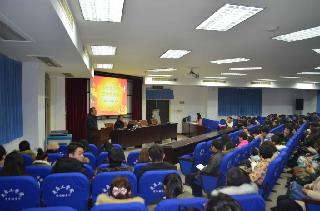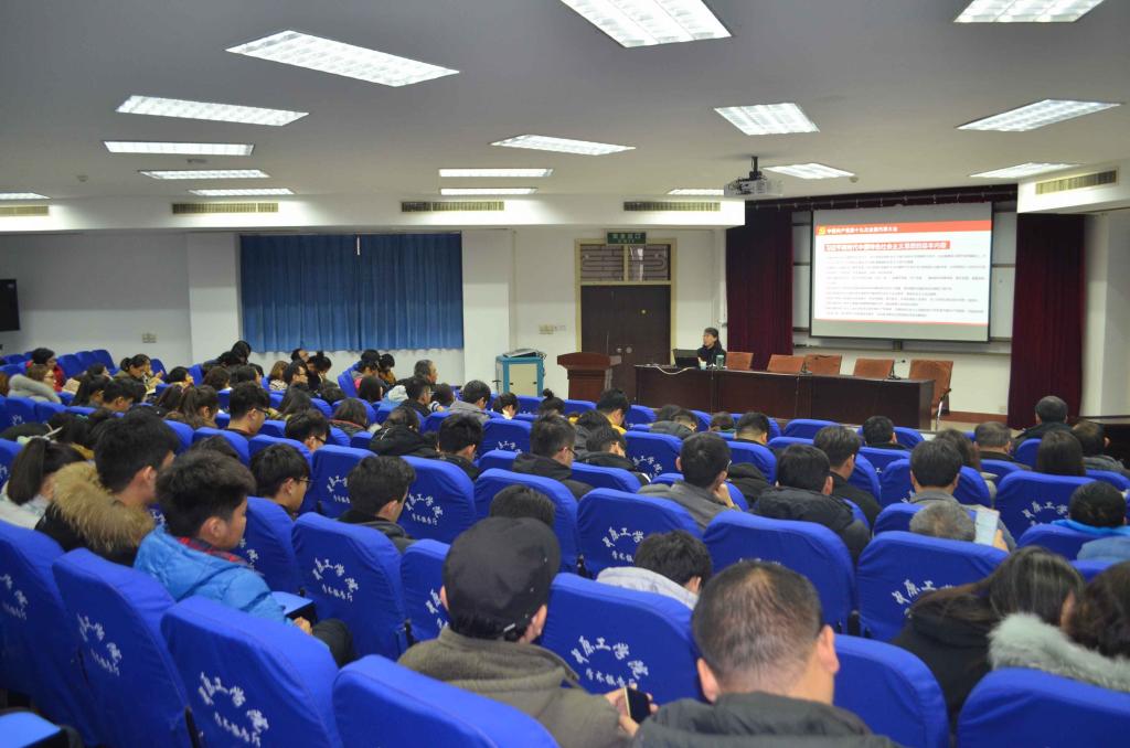 在4号楼311学术报告厅举行党的十九大精神集中宣讲报告会,邀请马克思主义学院虎业勤教授来学院作专题辅导报告。辅导报告会由学院张启峰书记主持,学院200多名师生聆听。