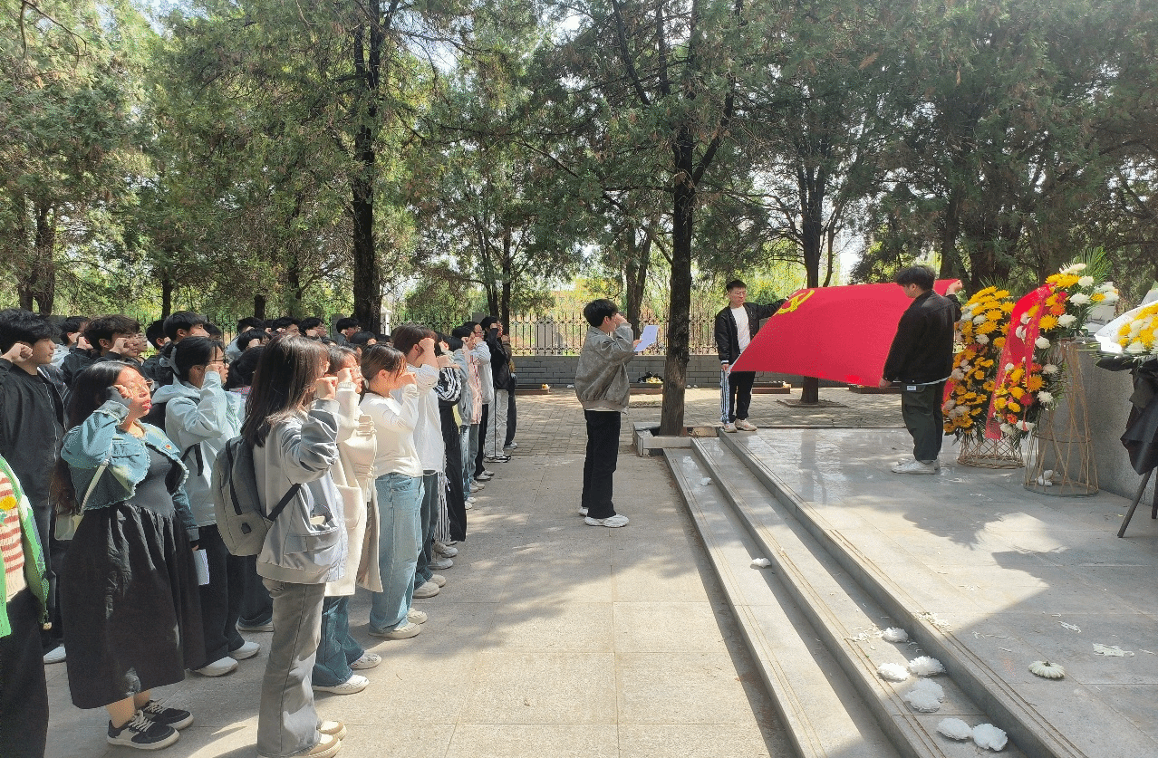 学生党支部书记带领学生党员、积极分子共计49人赴新郑烈士陵园开展清明节“传承英烈志 奋进新征程”主题党日活动。