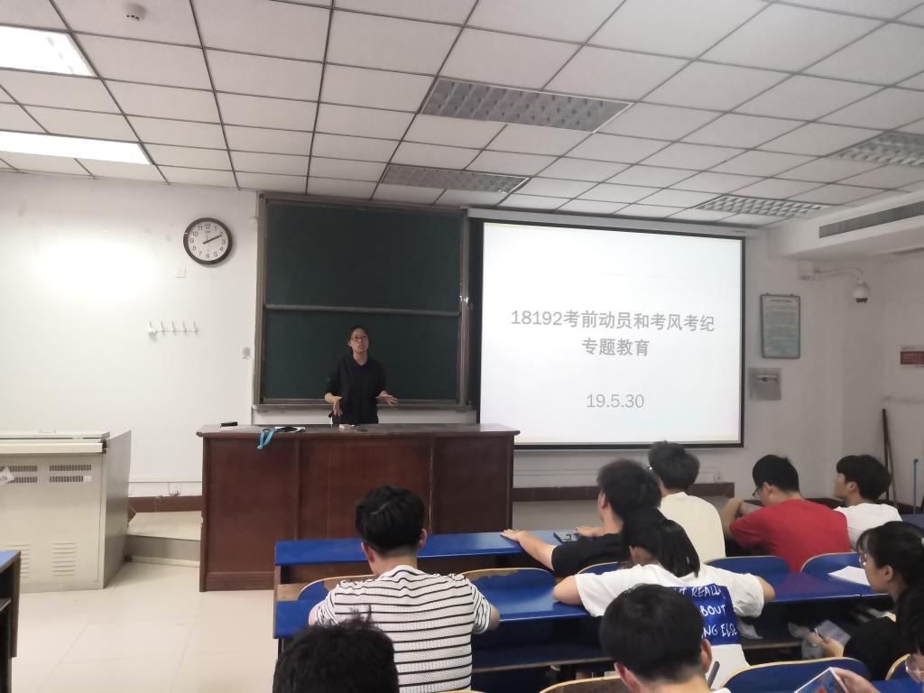 统一安排的《关于加强2019年高考期间学生教育管理的通知》专题教育会、18192考前动员和考风考纪专题教育会于4号楼216教室顺利进行。由侯向花老师主讲,18级各班参加本次会议。
