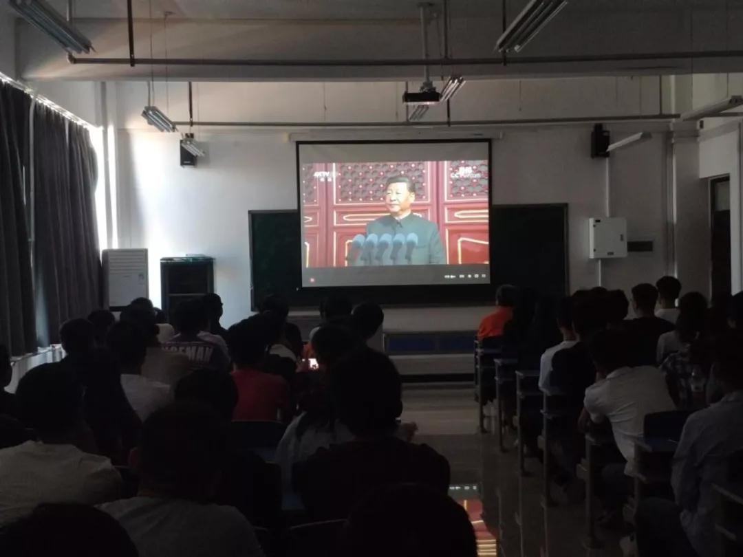 学生和学院老师相聚于三号组团楼A907,一起观看中华人民共和国成立70周年阅兵仪式。R34lol