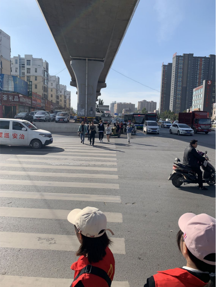 整个活动分为两个时间段,上午和下午。24名志愿者分别于上午9点和下午3点到达双湖大道与交警对接,在明确了自己的工作之后,志愿者们开始在各个交叉路口梳理交通。阻止行人闯红灯,不走人行横道,提醒人们遵守红灯停绿灯行的交通规则,提醒非机动车辆和机动车辆不要违规行驶以及停车等。志愿者们分工合作,在交警的帮助下成功地完成了梳理交通的任务。