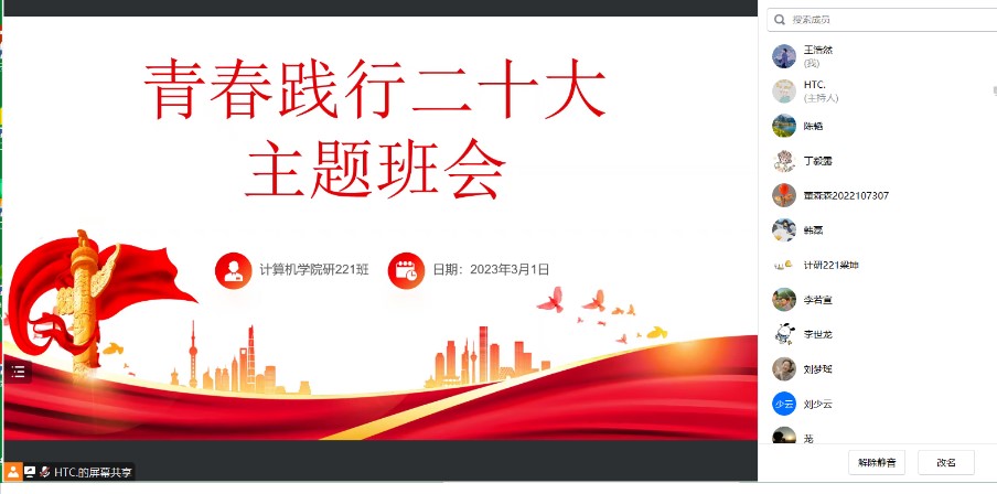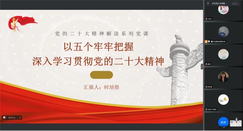 在全体本科、研究生班级中组织开展“青春践行二十大、砥砺奋进新征程”主题班会,激励全体学生自信自强、守正创新,踔厉奋发、勇毅前行,在新征程上奋勇争先、更加出彩。