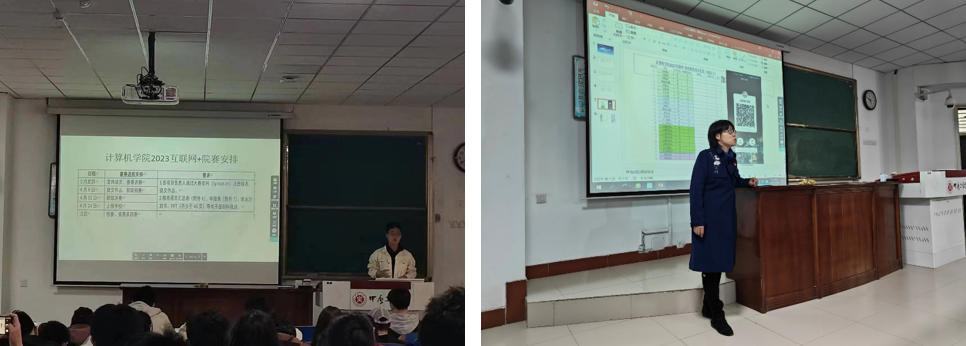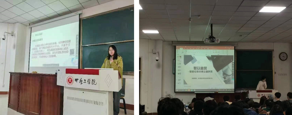首先由学院上届团委副书记肖一凡同学就“互联网+”大学生创新创业大赛的赛道类别、参赛材料准备、赛事流程、相关奖励等展开了详细讲解,接下来是2022年挑战杯省赛三等奖项目团队负责人苏雪,结合其团队获奖作品——《智以益贫——智能垃圾分类公益扶贫》项目进行讲解,同时分享了参与创新创业竞赛的体会收获,并鼓励大家多多尝试、踊跃参与。兼职辅导员冷亚珂对R34lol