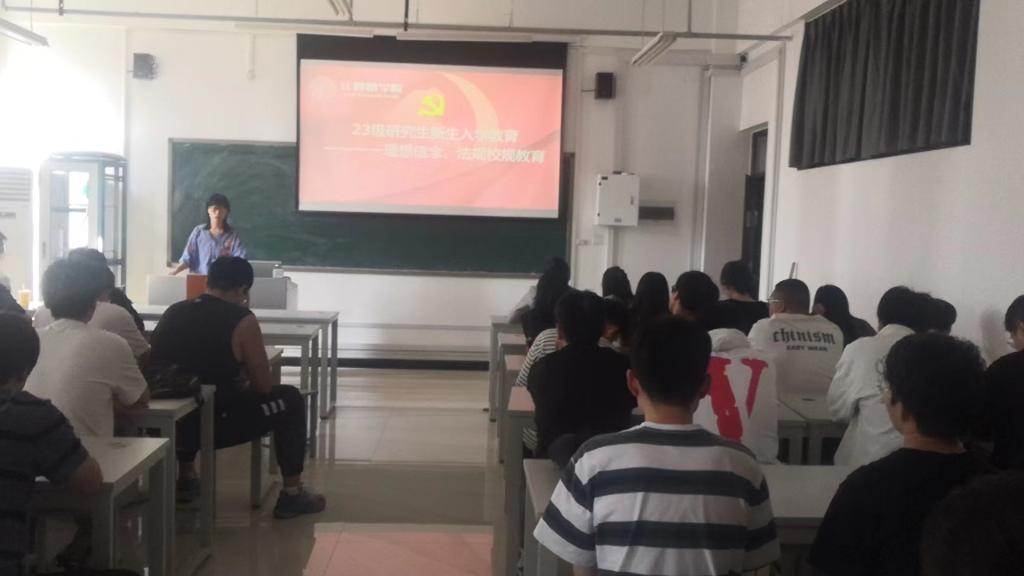 党委副书记侯向花,研究生辅导员于倩静以及所有2023级研究生新生57人参会。
