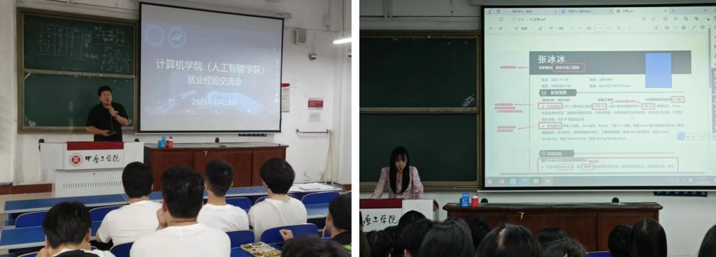 (人工智能学院)在龙湖校区3号教学楼102教室成功举办了优秀学长分享会暨求职就业经验交流会。学院党委副书记侯向花、2024届优秀毕业生代表、2025届全体同学和辅导员共同参会。