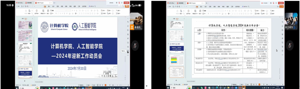、人工智能学院于2024年7月30日通过腾讯会议方式召开了2024迎新工作动员会。此次会议旨在全面部署和安排迎新工作,确保每一位2024级新入学的同学都能感受到学院的热情与关怀,顺利开启他们的大学生活。