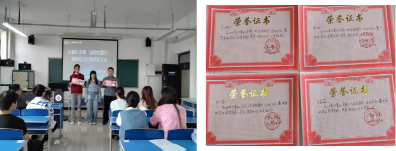 在3号组团楼A908举办了“诚信校园行”征文比赛表彰大会,对获奖学生进行隆重表彰,颁发奖状及奖品。R34lol