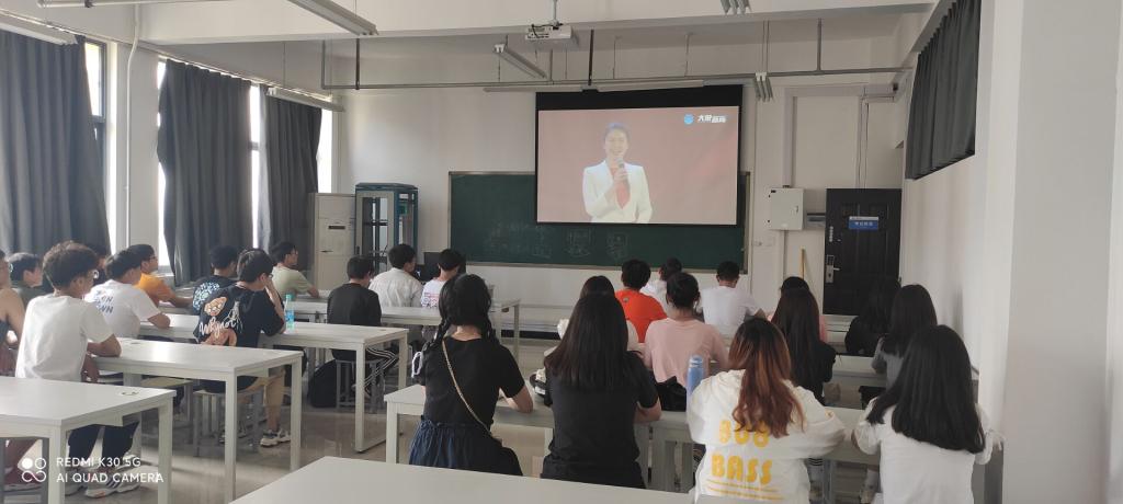 各班级因当时有课无法收看直播有,之后学院组织在校生六百五十多人,在多个教室及通过网络会议形式,集中收看了这堂党史学习教育主题思政课。