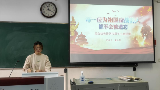 团总支响应上级号召,在全体团支部中开展 “致敬抗美援朝,争做时代新人”主题团日活动,以铭记每一位牺牲在朝鲜战场的中国志愿军烈士。