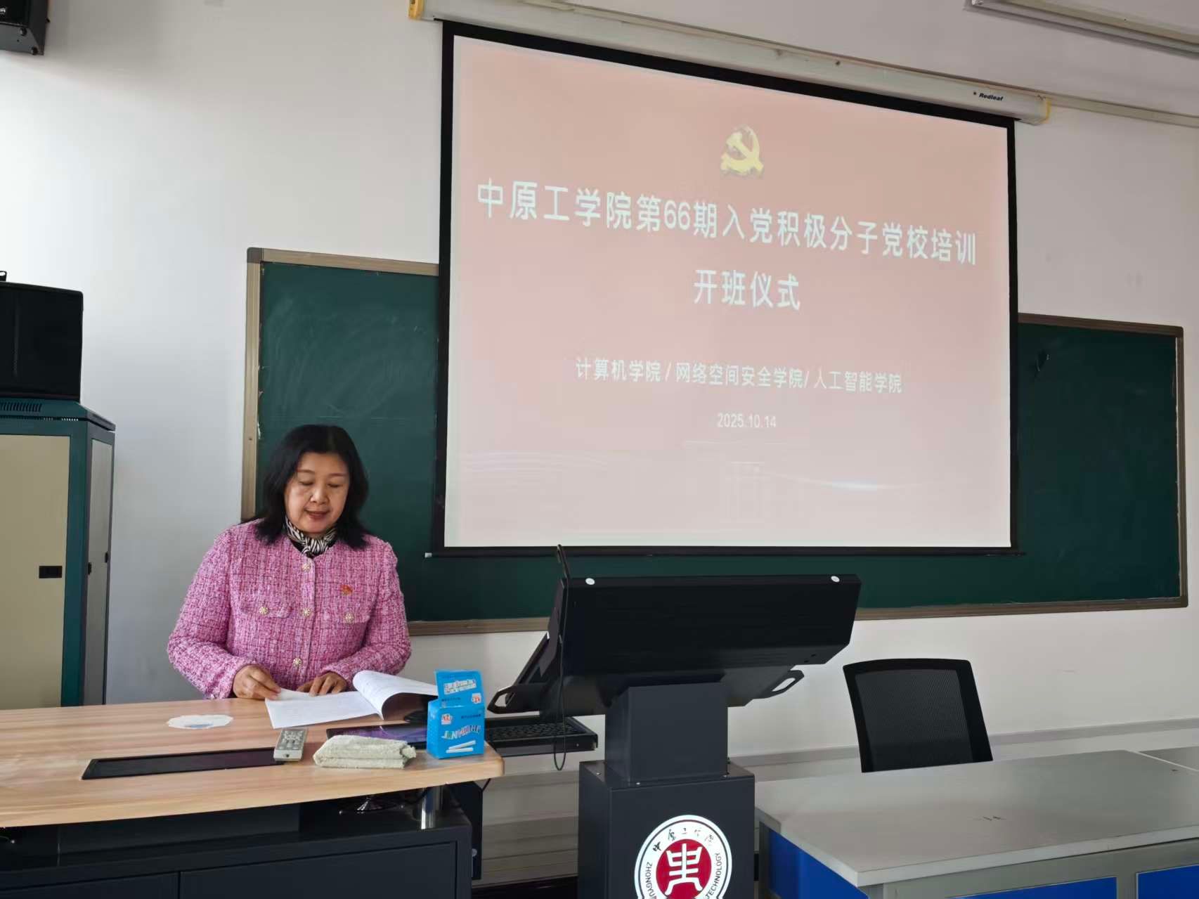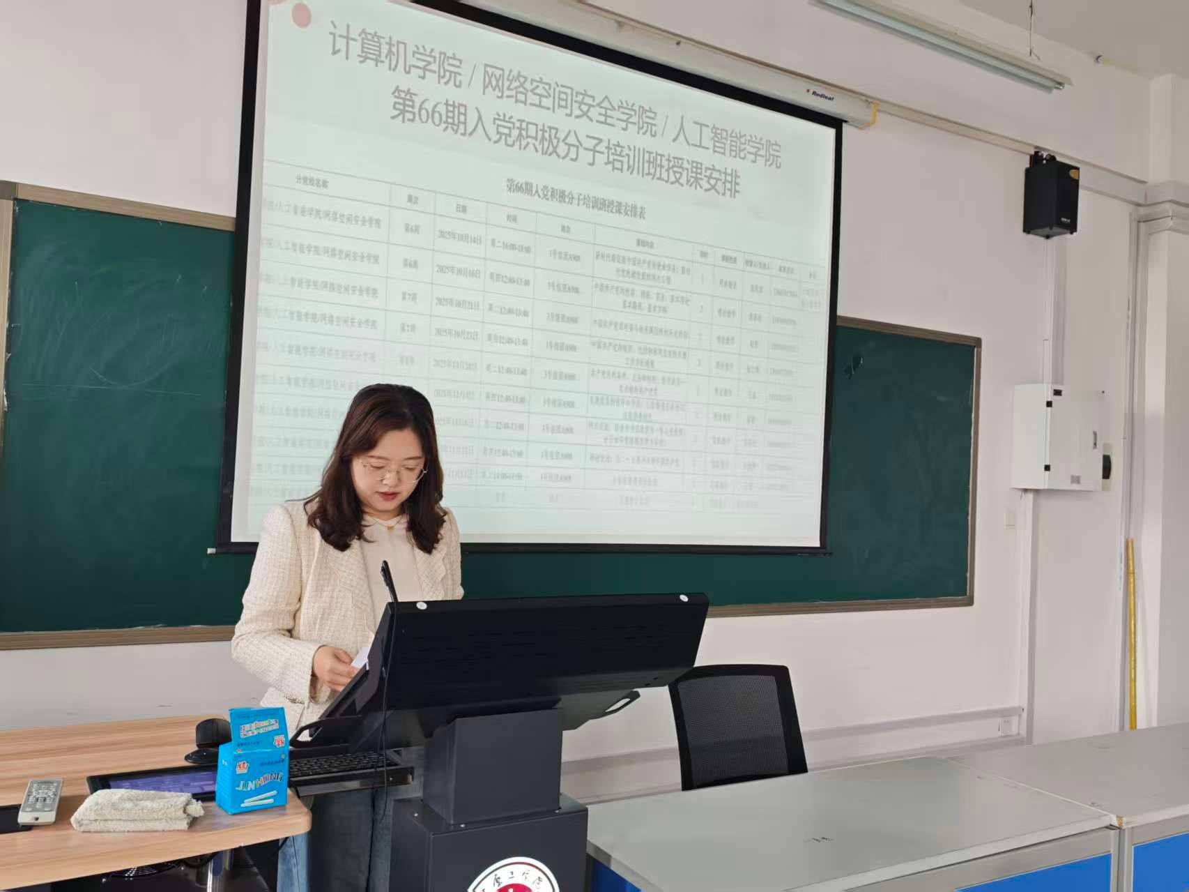 网络空间安全学院党总支副书记邢颖系统介绍了本次培训班的具体的培训安排、课程设置以及学习目标,鼓励学员们抓好本次学习机会,努力吸收党的创新理论,端正入党动机,锤炼党性修养。