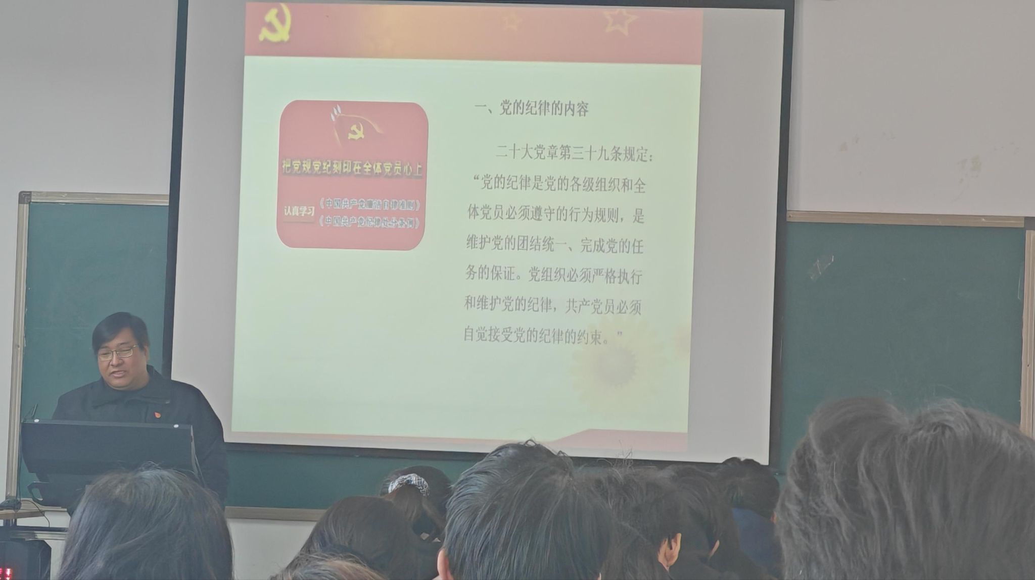 在3号组团楼A908教室举办“中国共产党的组织、纪律和作风及党的宗教工作方针政策”专题党课。本次党课为学院系列党课第三讲,由人工智能学院直属党支部副书记张志鹏主讲。