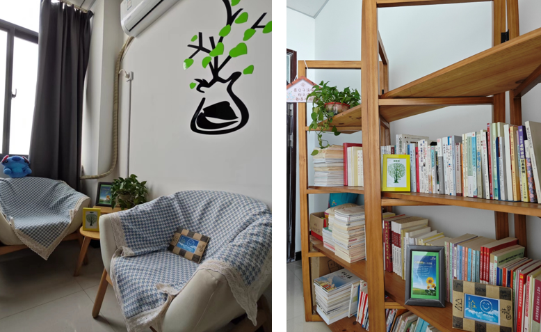 龙湖校区3号组团B座1121室,整体风格温馨舒适,同时也给来访以隐私安全感和舒适放松感,日常活动涵盖心理宣教、心理晤谈、心理辅导、心理书籍借阅等形式和内容,是学生心灵的港湾和成长的摇篮。