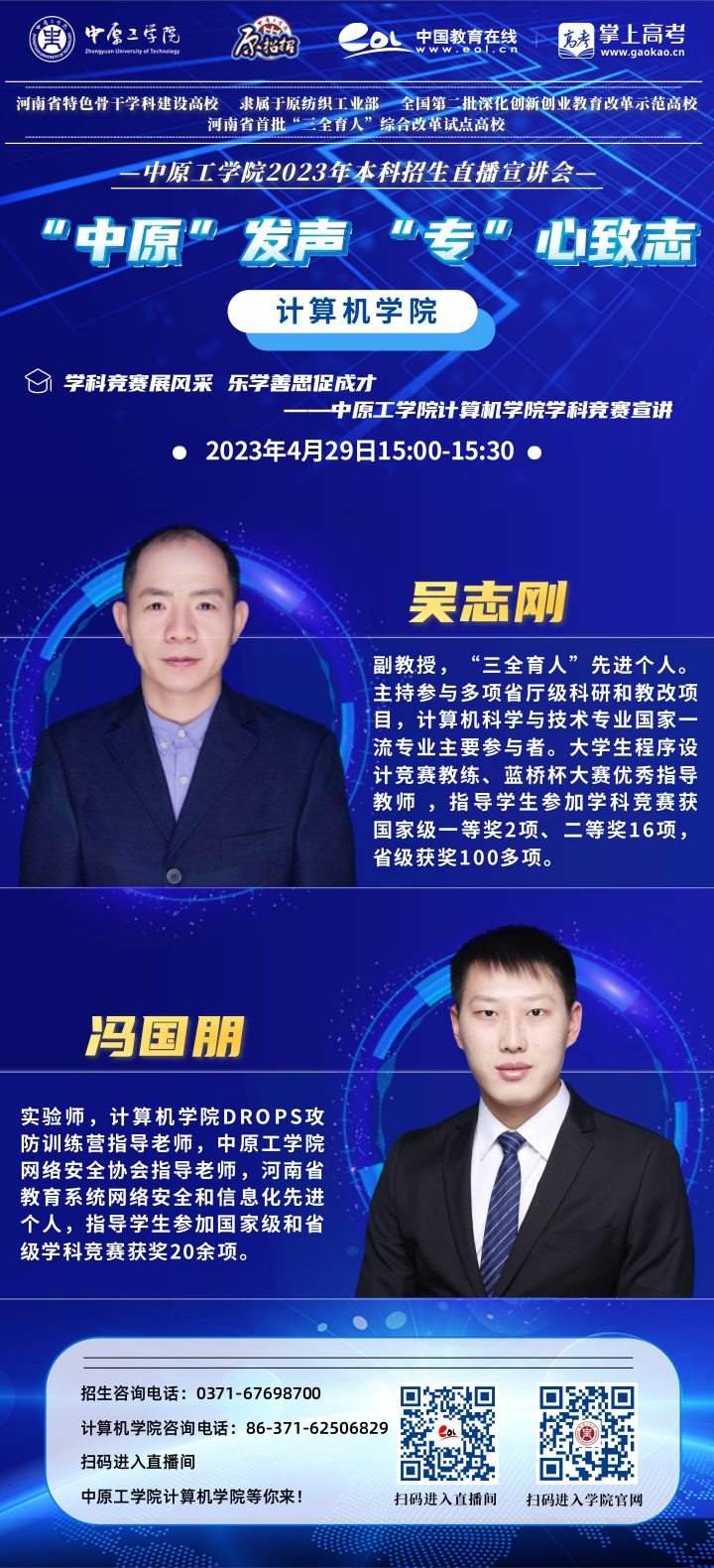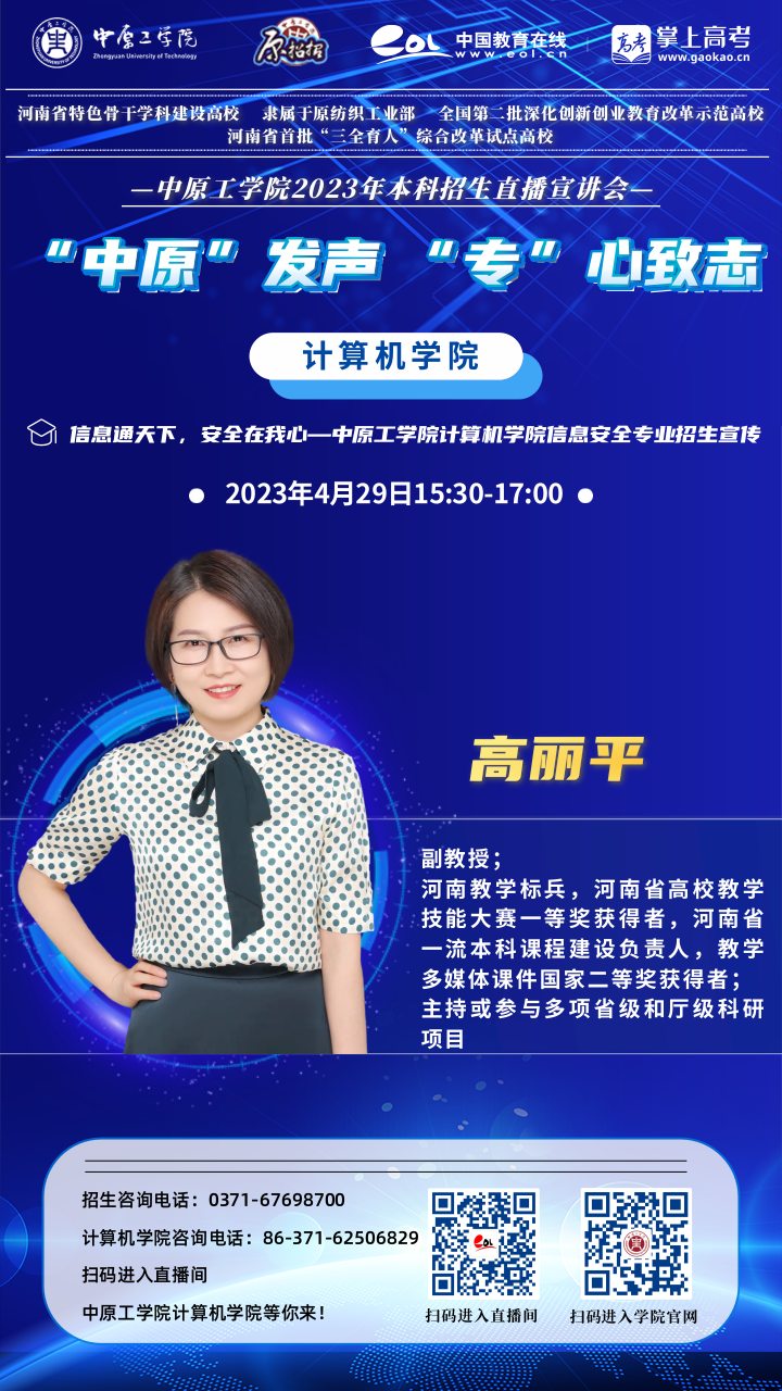 先进计算研究方向的科研开发和社会服务能力处于国家前列,在网络安全评估、网络舆情内容分析、医学图像处理、医学文本分析和数据可视化等研究领域的科研实力位于河南省前列。建有“河南省工业互联网安全大数据发展创新实验室”“河南省本科高校智慧教学管理创新研究实验室”“郑州市文本处理与图像理解重点实验室”、R34lol