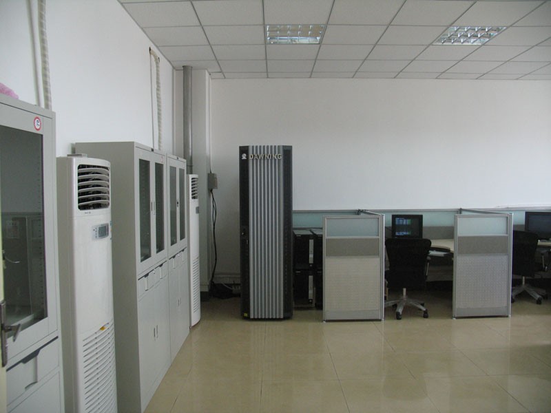 实验室目前拥有基于InfiniBand Ⅲ的高性能集群服务器系统一套,以及各种用于GPU计算的显卡及计算机设备等。集群系统共22节点,内存容量22GB,硬盘容量1718G,理论峰值速度为每秒2464亿次浮点运算。集群由三套网络组成,即由Flextronics的InfiniBand Ⅲ交换机和HCA网卡组成高性能通讯网络,用于科学计算时的数据通讯;使用以太网通过监控软件来完成集群的网络监控工作;以及由曙光公司研发的SKVM结点机切换管理系统。其中,结点机型号:曙光I650r-E;I410r-V;交换机型号:24口ExpressX4 Flextronics F-X430060;HCA卡型号:MHES14-XT(基于PCI-ExpressX4)。